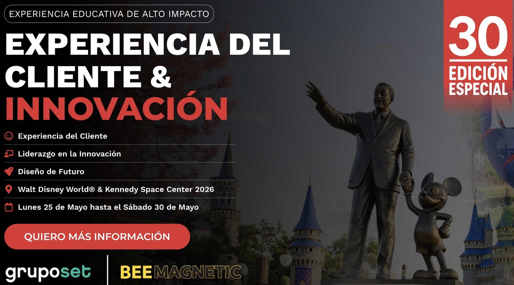 El programa combina masterclasses, workshops y bibliografía especializada, impartidos por expertos como Doug Lipp (ex Disney University), Jonatan Loidi y Julián “Gaita” González, embajadores de la Cultura Disney en Latinoamérica, autores del libro “Los Secretos Detrás de la Magia” y profesores MBA | EMBA Torcuato Di Tella. Además de la presencia del astronauta Donald A Thomas.